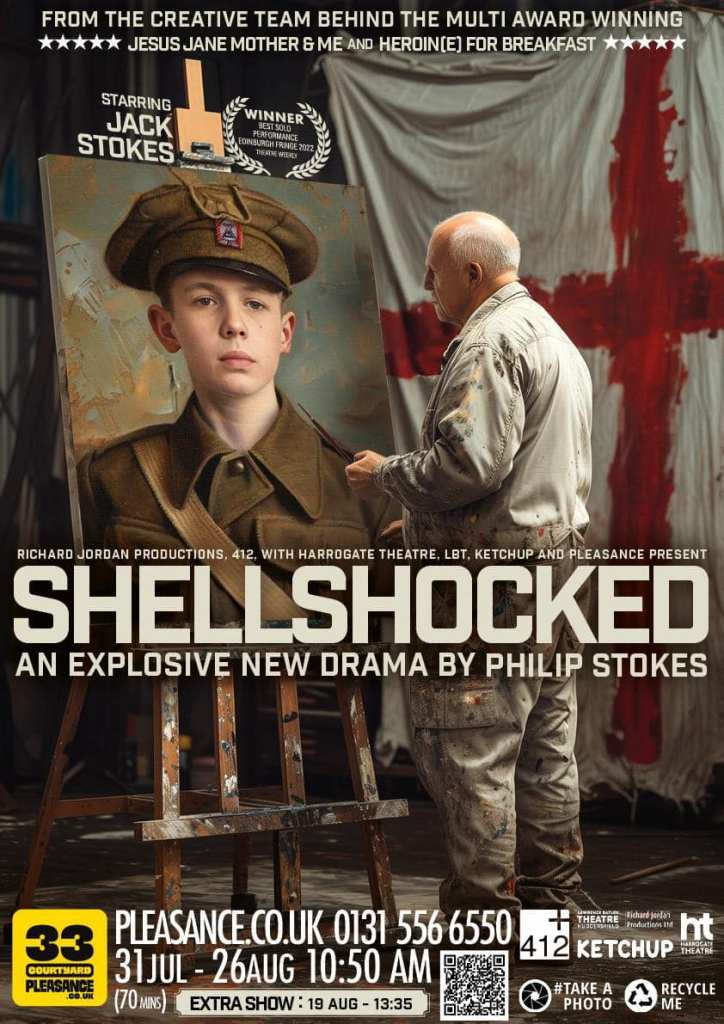 The play deals deftly with the impact of war on the soldiers themselves, and those who felt left behind. ‘Shellshocked’ plays with the idea of power and responsibility, the creation of meaningful art and the terrible impact jealousy can have on others.